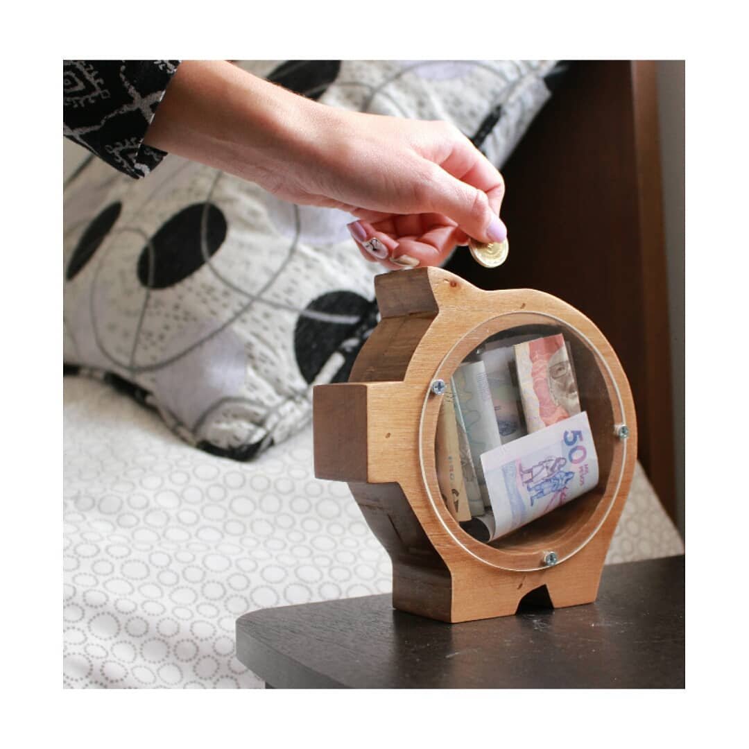 Convierte el hábito del ahorro en una experiencia visualmente motivadora con esta original alcancía de madera con diseño de cerdito y ventana frontal acrílica.
